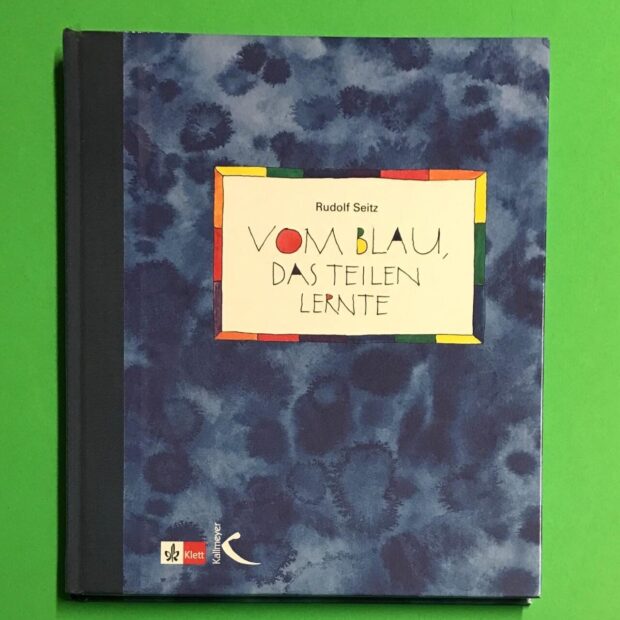 Vom Blau, das Teilen lernte von Rudolf Seitz ist ein Kinderbuch. Es geht zum einen um eine kleine Farbenlehre und zum anderen um die soziale Haltung des Teilens: Ein Regenbogen “bricht” auseinander und seine Farben suchen sich einen Ort, an dem sie bleiben können. Das Gelb schlüpft in ein Getreidefeld, das Rot in ein Ziegeldach, das Grün in die Wiese u.s.w. Nur das Blau möchte einen Ort besetzen, den es ganz für sich allein hat. Schon die Farbe des Wassers möchte es nicht werden, da der Sand darunter ja Gelb ist und auch den Himmel will es nicht mit Sonne, Mond und Sternen teilen. Durch diese Haltung vereinsamt das Blau zunehmend und wird traurig. Doch als es als Himmelblau schliesslich allen Farben beim prächtigen Sonnenaufgang Platz machen und den bunten Himmel als Ganzes geniessen kann, wird es wieder glücklich.