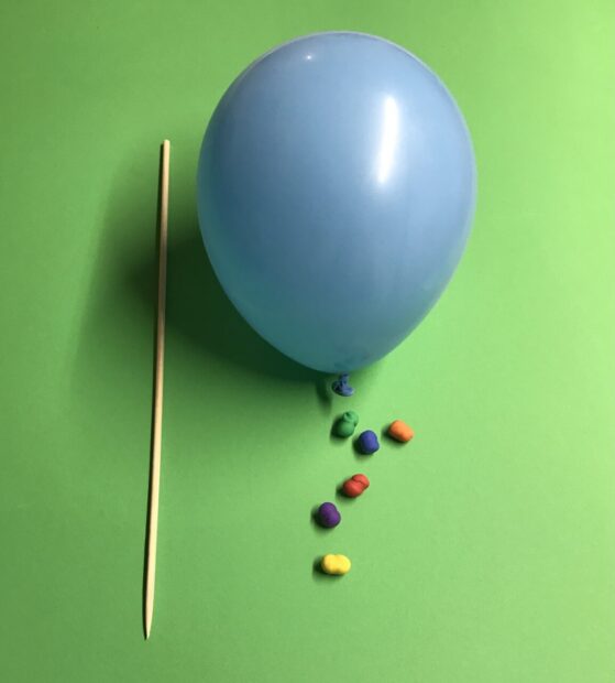 Handlung: Einen aufgeblasenen Luftballon Zum Platzen bringen. Zum Vorschein kommen Knetekugeln in den Regenbogenfarben.