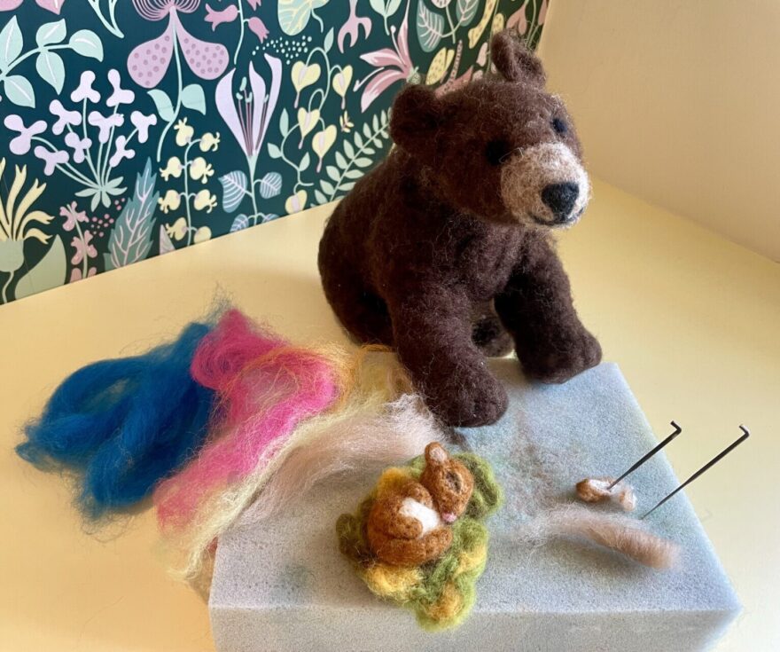 Meist greife ich für meine Animationen zu alltäglichen Materialien, die ich griffbereit habe, wie zum Beispiel die farbige Knete meiner Söhne, die sich immer wieder anders einsetzen lässt. Ab und zu, wenn es die Zeit zulässt, kann ich auch eines meiner aufwendigeren Hobbies mit der Arbeit an einem Bilderbuch verknüpfen und eine Figur aus dem Buch mit der Nadel filzen. Das Filzen hat für mich etwas Meditatives. Dabei komme ich zur Ruhe und kann meine Gedanken fliegen lassen. Jedenfalls wenn ich mir dabei nicht gerade in den Finger steche.