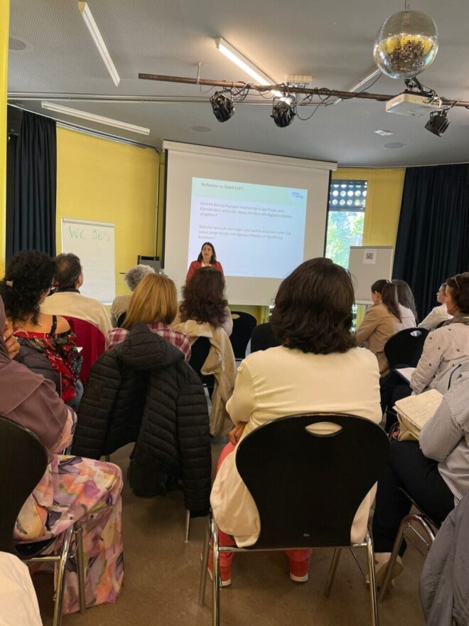 Nach einem beeindruckenden Vortrag von Raquel Paz Castro (wissenschaftliche Mitarbeiterin am Marie Meierhofer Institut für das Kind MMI) über “Kinder und digitale Medien” genossen die Teilnehmer:innen einen leckeren Mittagssnack mit Kuchen und Kaffee.