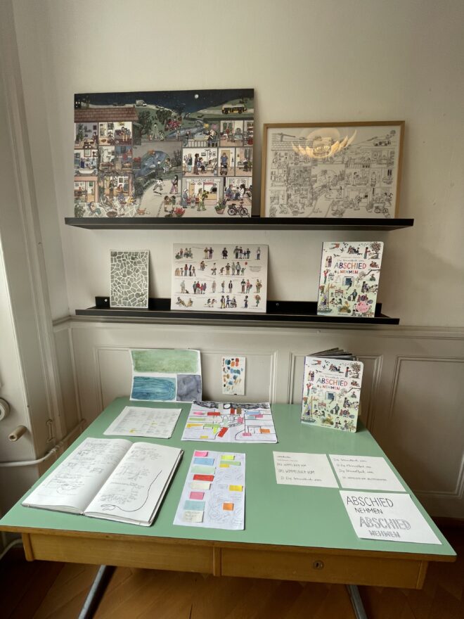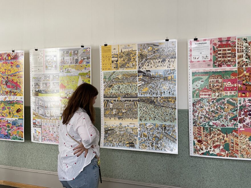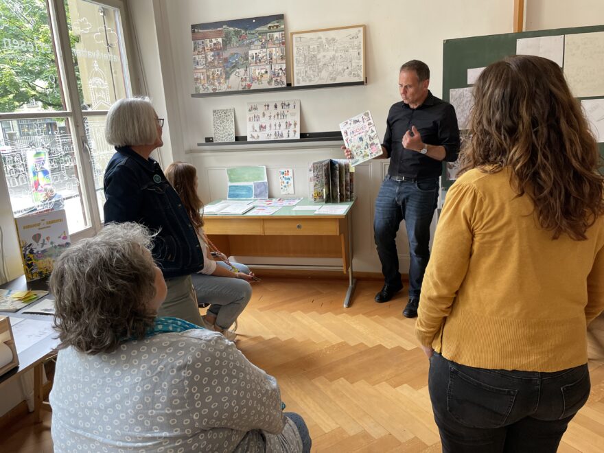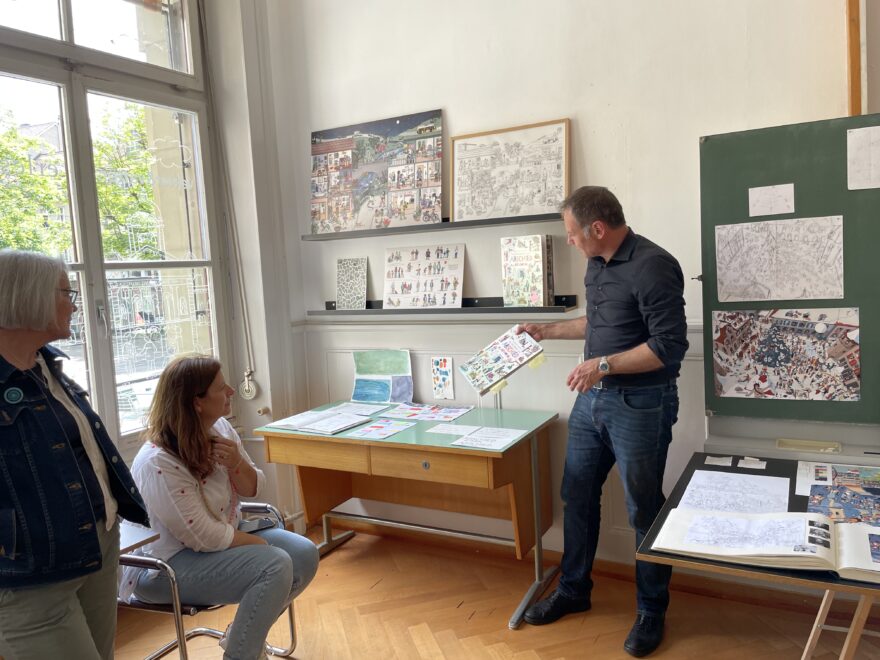 Ein Hoch auf die Kunst des Wimmelns! Zum 10-jährigen Bestehen von vatter&vatter wurde das Wimmelbuch gefeiert – bunt, detailverliebt und grenzenlos inspirierend. Eine kleine, neugierige Gruppe von Leseanimator:innen SIKJM durfte in die faszinierende Welt der Wimmelbilder eintauchen. Kein Geringerer als Matthias Vatter selbst führte uns durch die liebevoll kuratierte Ausstellung und öffnete Türen zu historischen Vorbildern von Pieter Bruegel bis Ali Mitgutsch.
