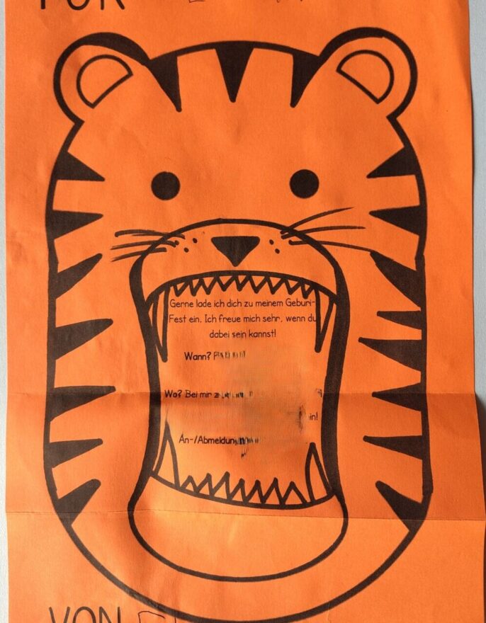 Und kürzlich wurde eine Geburtstagseinladung in Tiger-Gestalt gewünscht: