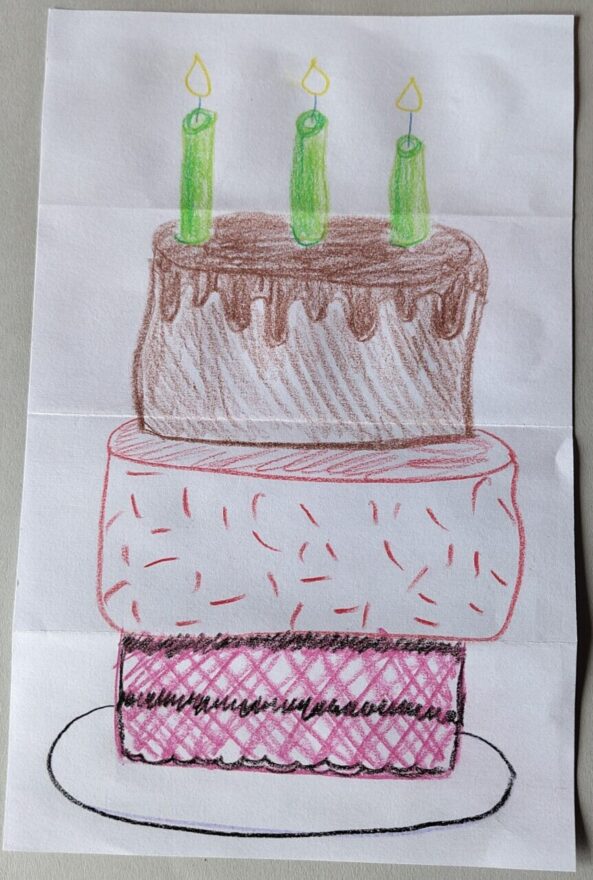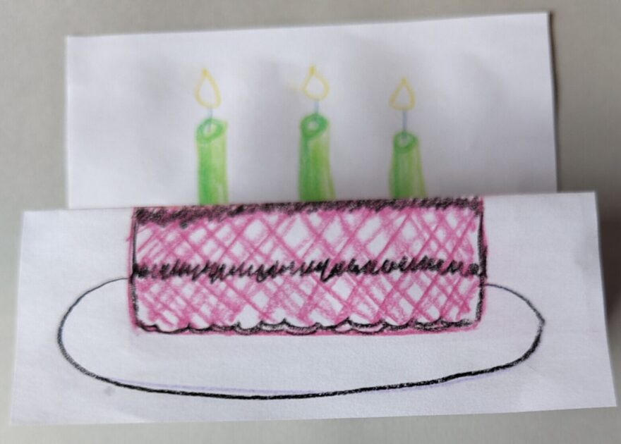 Weiterentwickelt haben wir die Faltidee zu einer Geburtstagseinladung mit Überraschungstorte: