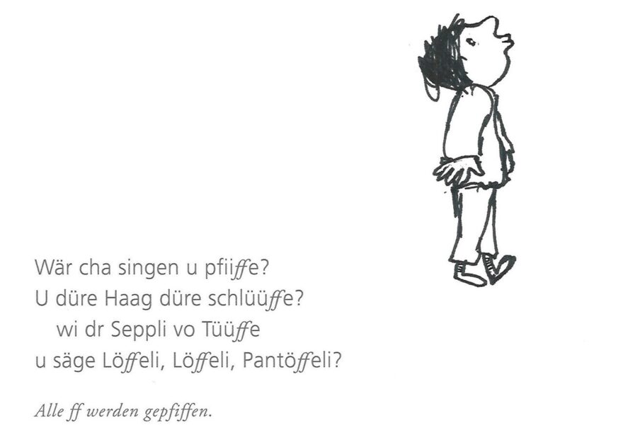 Die Abbildungen/Illustrationen aus diesem Schnipsel sind aus dem Buch Ängeli Flüg, auti Värsli u Liedli von Eva Klaus und Margret Baumann ©Verlag Lauitor Thun, 2018