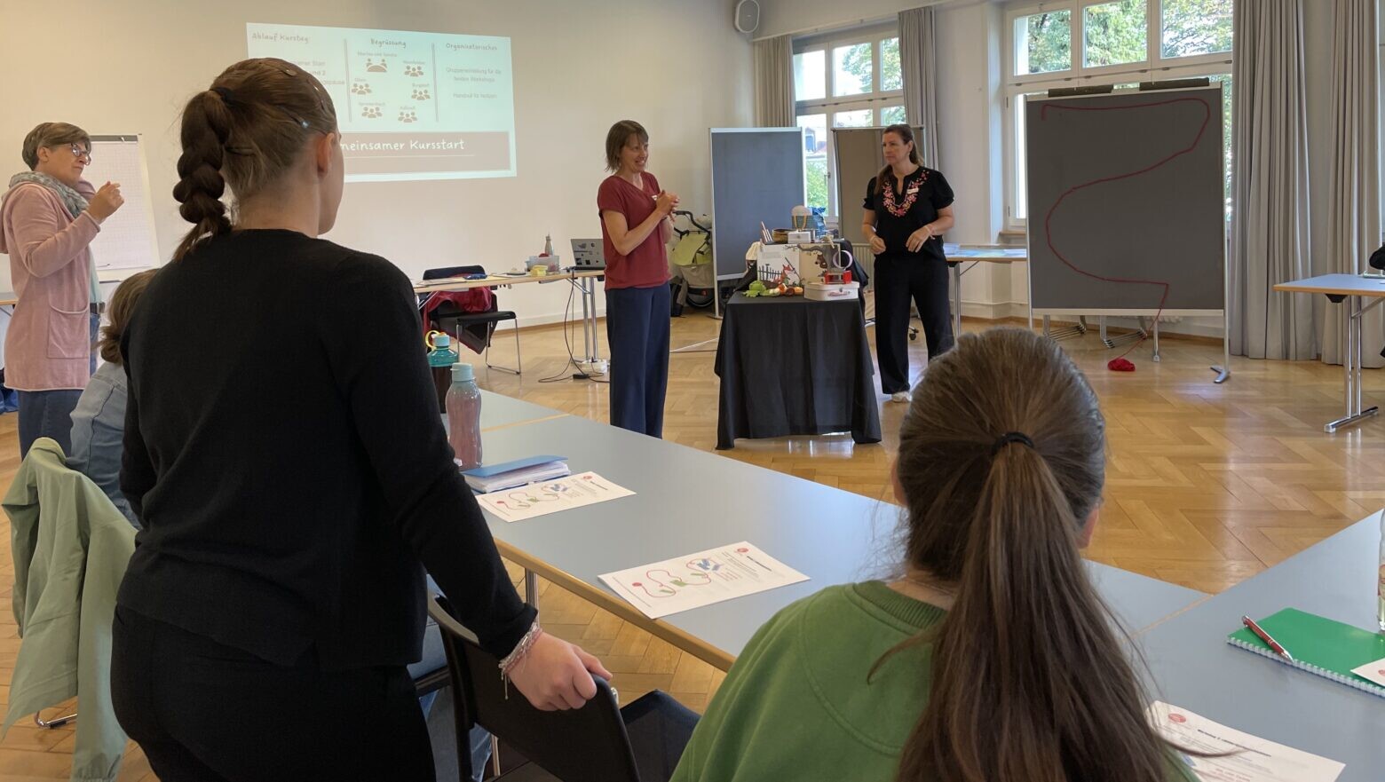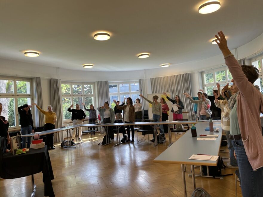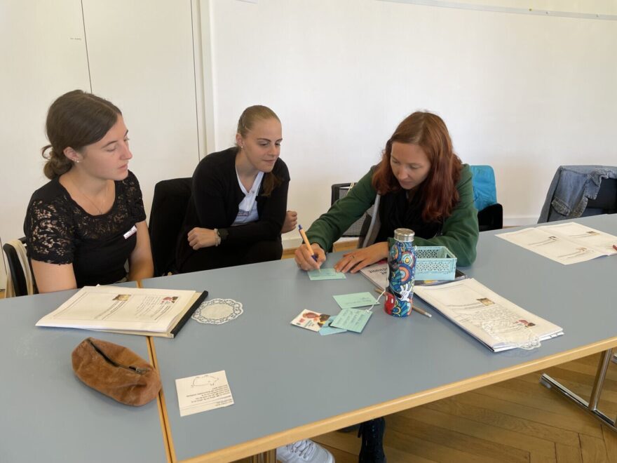 Das Teamteaching ermöglichte den Teilnehmenden nicht nur, mehr als eine vermittelnde Persönlichkeit mit ihrem Hintergrund zu erleben. Den Anfang machten die beiden mit einem gegenseitigen Interview, welches das Vorgehen, eine Wunderstunde rund um ein Buch zu konzipieren, unterhaltsam in die Runde brachte.