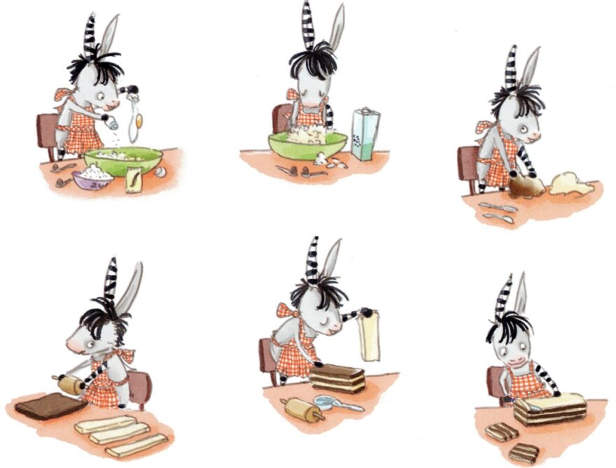 Da backen wir gleich los. Möhrchen zeigt, wie’s geht: