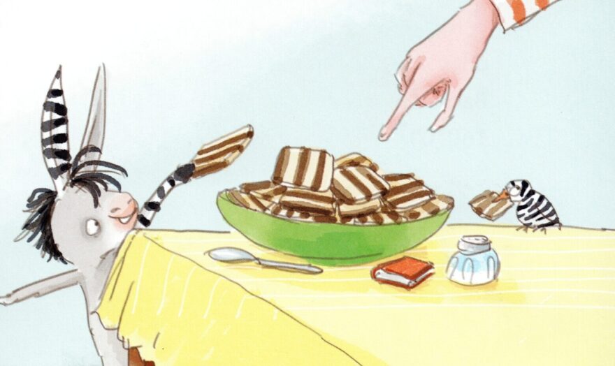 Das ist Möhrchen. Möhrchen ist ein kleiner Zesel. Was ein Zesel ist? Das ist doch klar: halb Zebra, halb Esel – gibt’s übrigens auch in Wirklichkeit. Dieser kleine Zesel hier namens Möhrchen ist jedoch ein ganz besonderes kleines Kerlchen, welches wirklich sehr klein geraten ist, menschisch spricht und seit geraumer Zeit bei seinem Freund Grimm im Haus mit der schiefen Sieben wohnt. Zusammen arbeiten sie in einer Buchhandlung und erzählen bereits in verschiedenen (Vor-)Lesebüchern, Bilder- und Pappbüchern von ihren grossen und kleinen wunderbar normalen, lustigen und verspielten Erlebnissen aus dem Alltag.